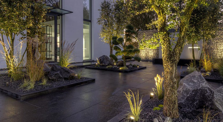Hill Valley Landscaping can help to transform your property at night with a wide range of outdoor lighting solutions. We use creative and inventive techniques to create beautiful outdoor lighting whilst ensuring a safe living environment. The right type of lighting can create a soft setting, relaxing environment and perfect place for unwinding at the end of the day. Both down-lighting and Outdoor lighting can be applied all around the external area of your home and throughout the garden area. Adding lighting to water features, ornaments, trees, pergolas, gazebos, pathways, walls and swimming pool can really help to improve your outdoor living experience.
